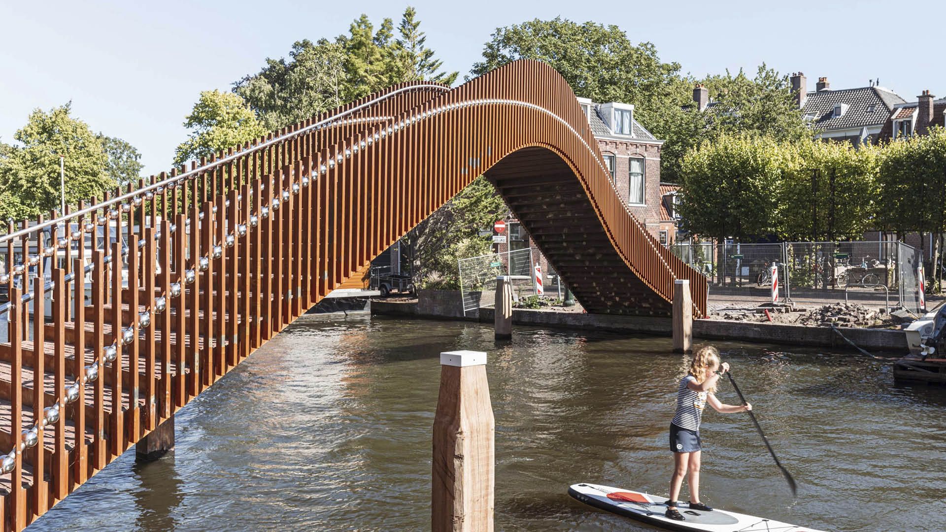 Les espaces verts dispersés le long de Leidse Singel sont reliés par cinq ponts et forment désormais un cercle récréatif au centre-ville de Leiden (NL).