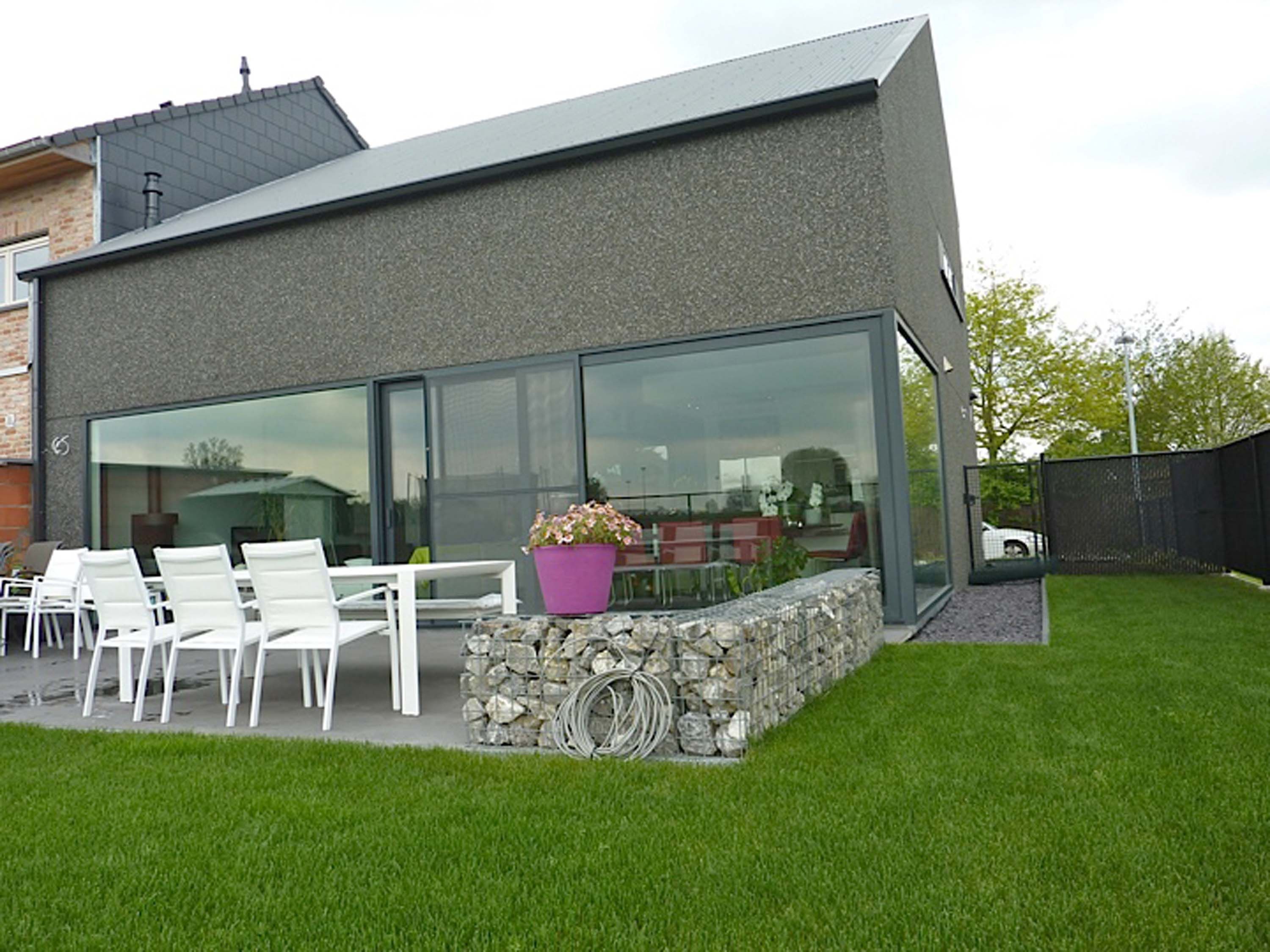 p>Op een landelijke verkaveling in Geraardsbergen werd met een bescheiden budget een eengezinswoning gebouwd. De keuze viel op staalbouw omdat hiermee zowel de bouwkost als de uitvoeringstermijn beperkt zouden blijven. Het uitgesproken industriële karakter, de ruime vide en de aanzienlijke hoeveelheid beglazing geven de bewoners ondanks het compacte bouwvolume bovendien de gewenste ruimtelijkheid.